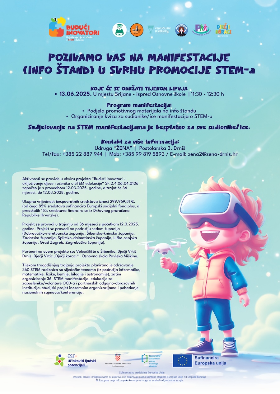 Poziv na manifestacije (info štand) u svrhu promocije STEM-a koje će će se održati tijekom srpnja 2025.